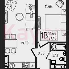 Квартира в ЖК «Мега-Победа» (СК Победа. Краснодар) литер 2 очередь 3, Кирпично-монолитный, 2 к.кв., 37.43 кв.м., 1/16, высота потолков: 2.74 м, жилая площадь: 11.66 кв.м., возможна ипотека, площадь кухни 19.59 кв.м., Проект включает в себя 3 очереди строительства. Очередь №1 состоит из 7 домов...