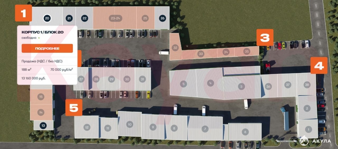 — это комплекс из 5 корпусов, которые включают в себя 38 помещений площадью от 50 кв.м., совмещающих в себе функции производства, склада и офиса.