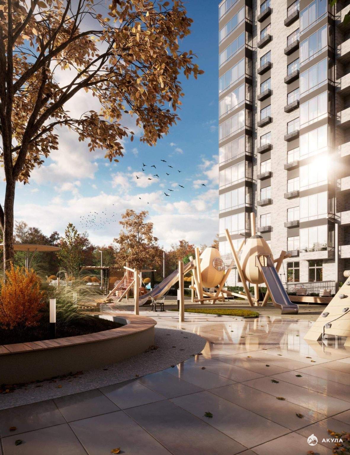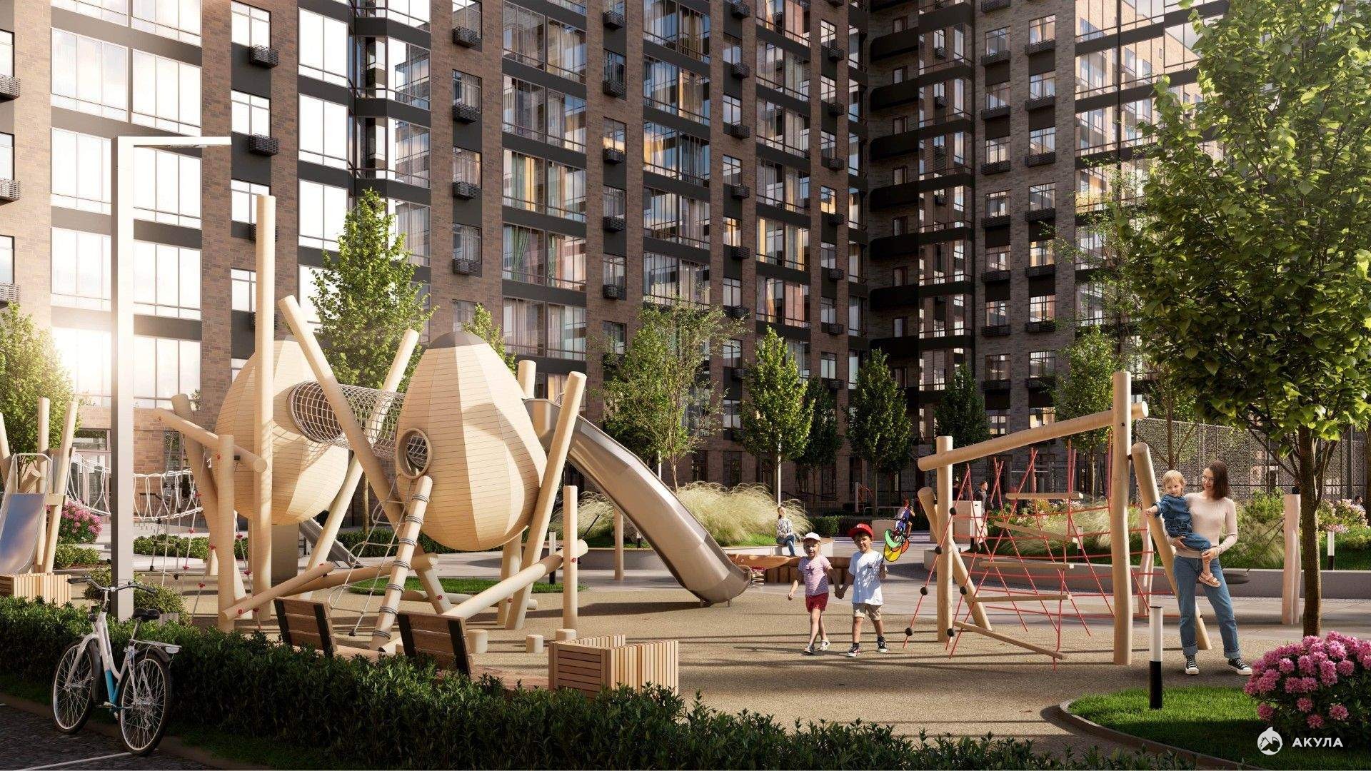 Подземная парковка. Инфраструктура: детские площадки, спортивные площадки, места для отдыха.