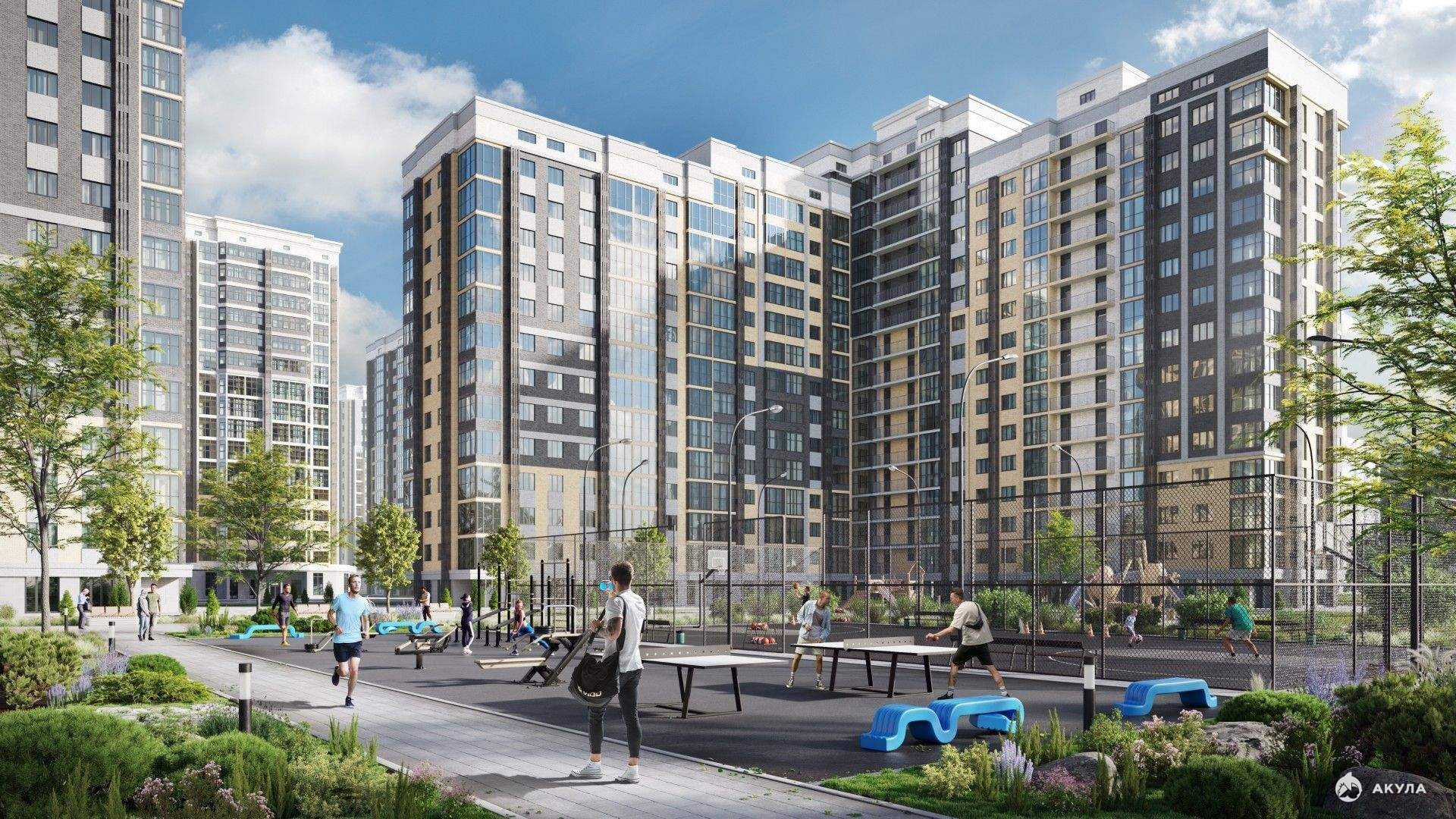 Отдельная многоуровневая парковка. Обеспечение безопасности: видеонаблюдение. Инфраструктура: школа, детский сад, детские площадки, спортивные площадки, места для отдыха.