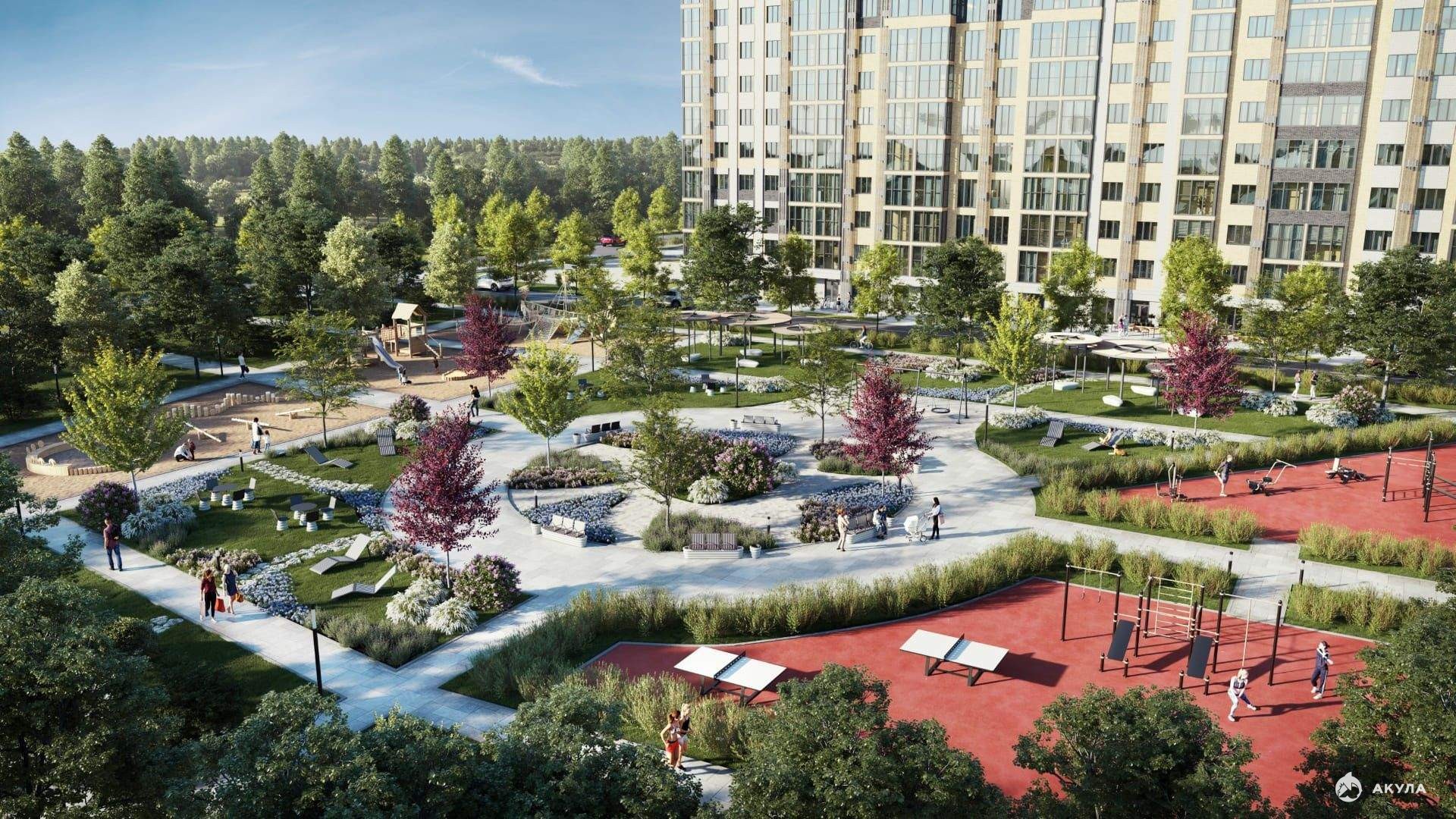 Отдельная многоуровневая парковка. Обеспечение безопасности: видеонаблюдение. Инфраструктура: школа, детский сад, детские площадки, спортивные площадки, места для отдыха.